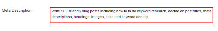 Meta descriptions are the short descriptions that show up in search results along with the link to your blog post: